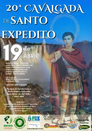 A mesma terá saída as 08h30 do Colégio Estadual Agrícola de Foz, percorrendo ruas diversas da cidade com a chegada na Capela de Santo Expedito às 10h30, com benção de populares e dos animais.